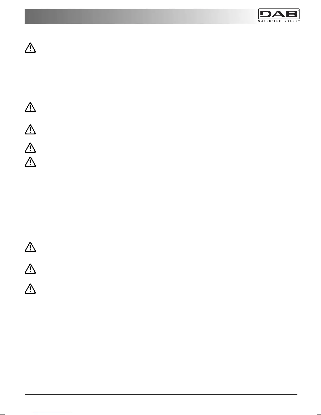 • Il voltaggio e la frequenza riportati sulla targhetta tecnica della pompa corrispondano ai dati dell’impianto