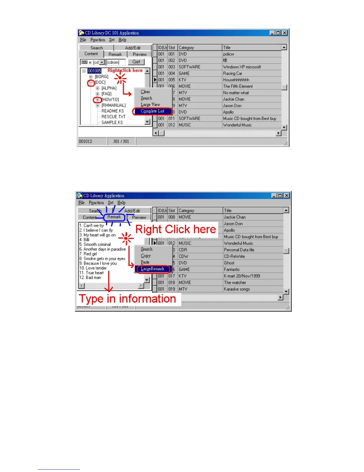 musical CD, since the names of the songs can be input for easy search,