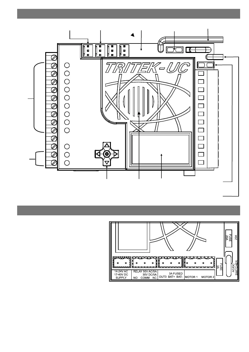 SUPPLY: Connect 14V AC to 24V AC or unregulated solar power (max. of 40V DC). Minimum supply current
