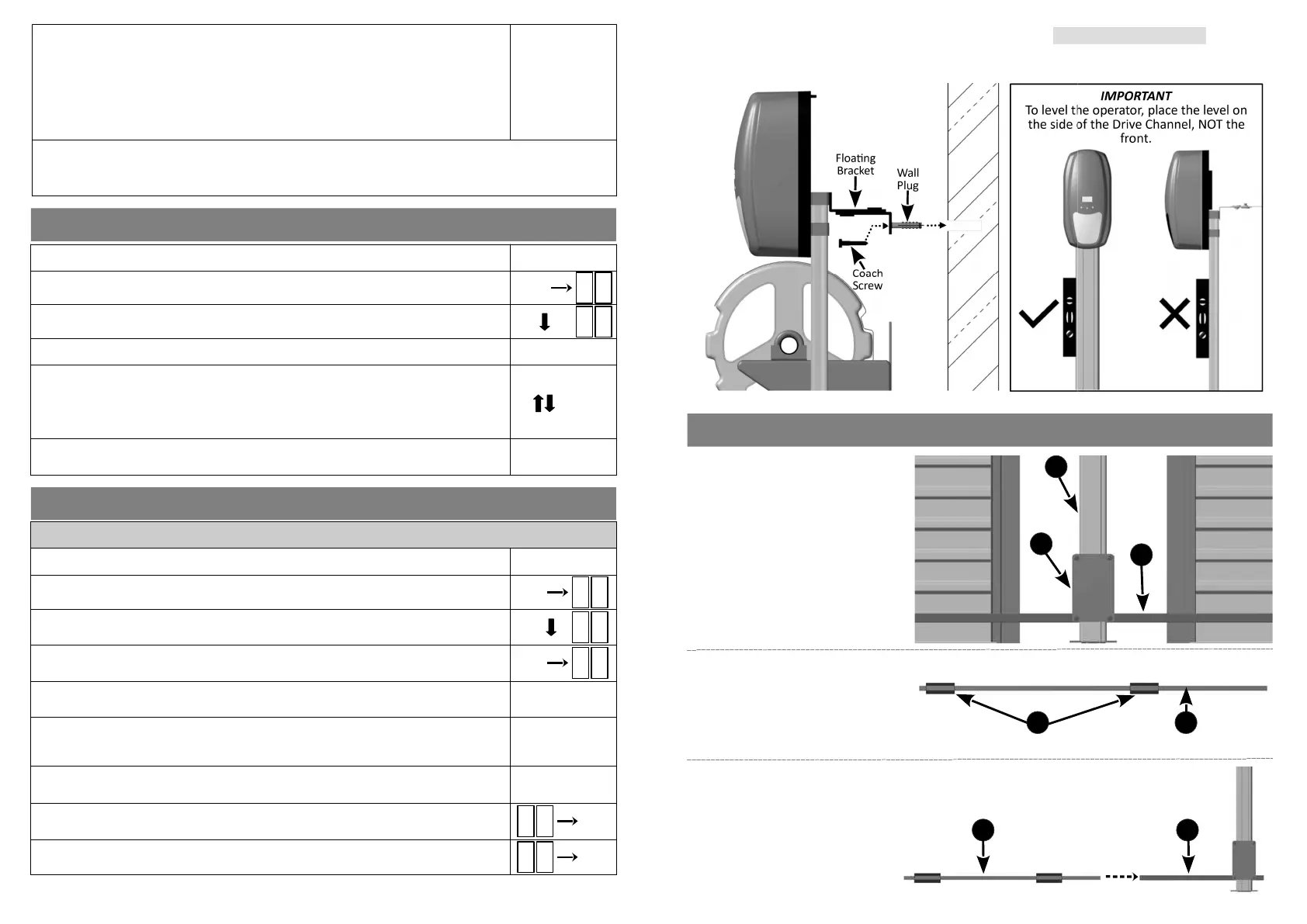 Ensure the operator is vercally level by placing a spirit level against the side of the Drive Channel.
