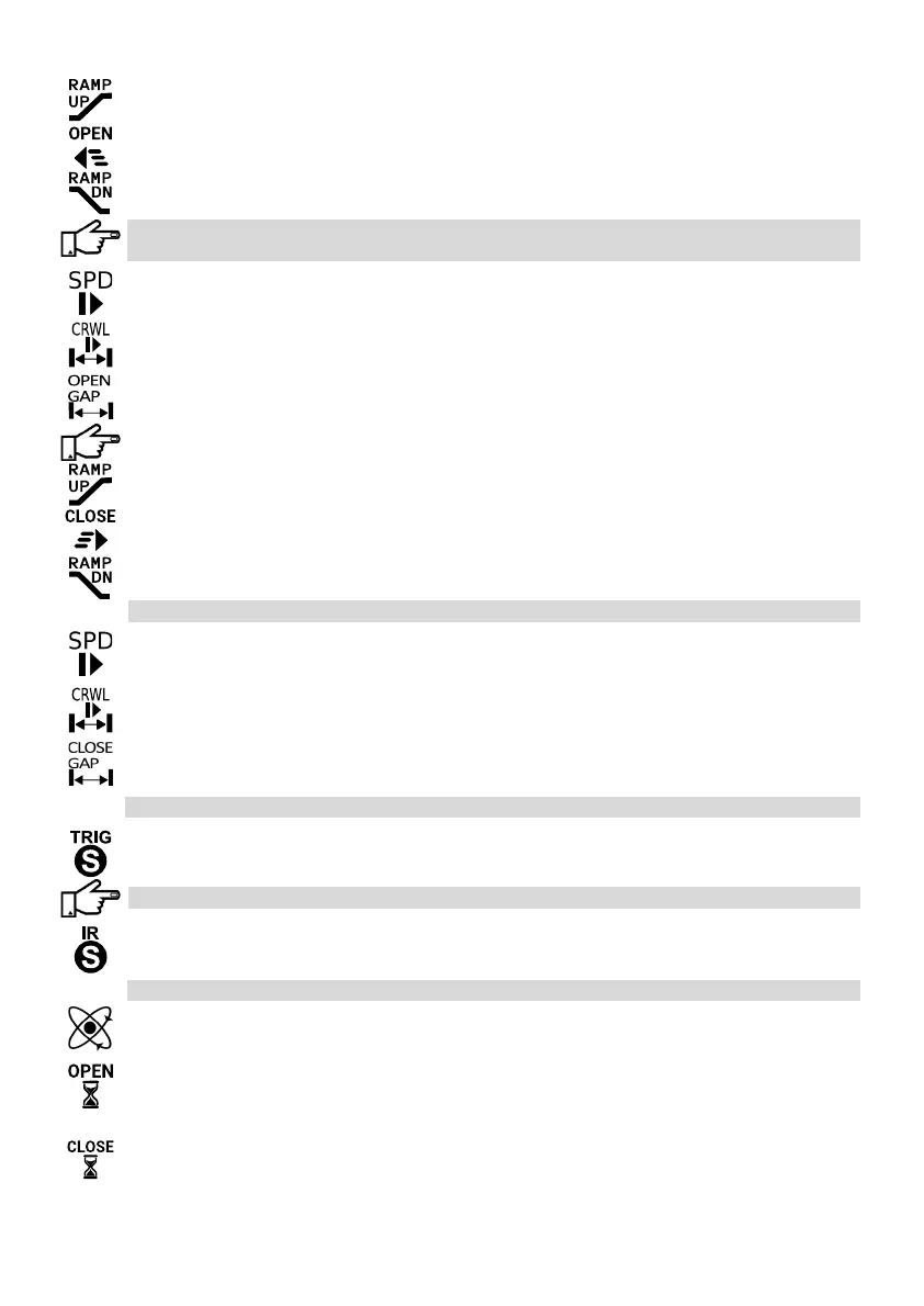 Adjusts the Ramp Up distance before maximum running speed is reached when the gate is opening.