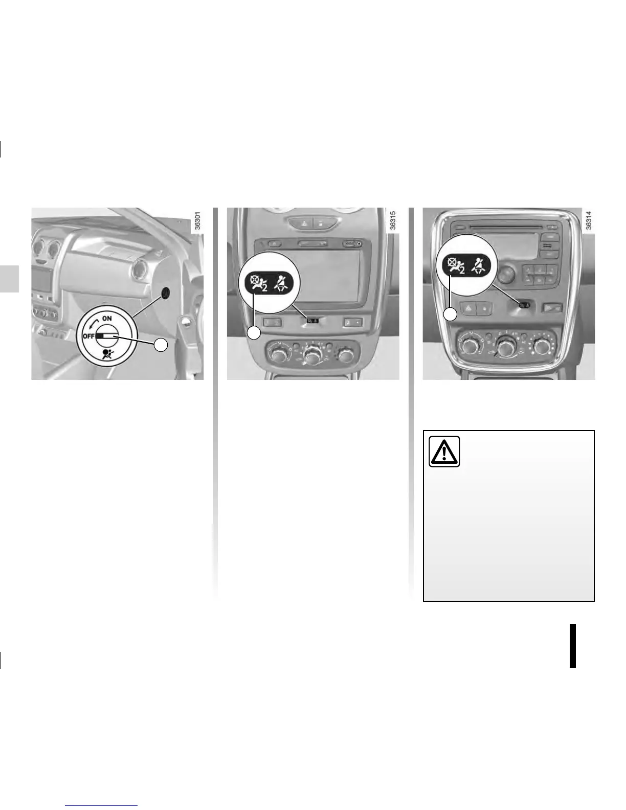 Sécurité enfants : désactivation/activation airbag passager avant (H79 Ph2 - H79 - Dacia)ENG_NU_1079-3_H79Ph2_Dacia_1