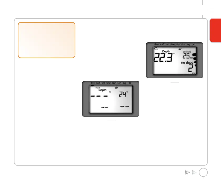 DIVE mode is activated by means of the buttons.