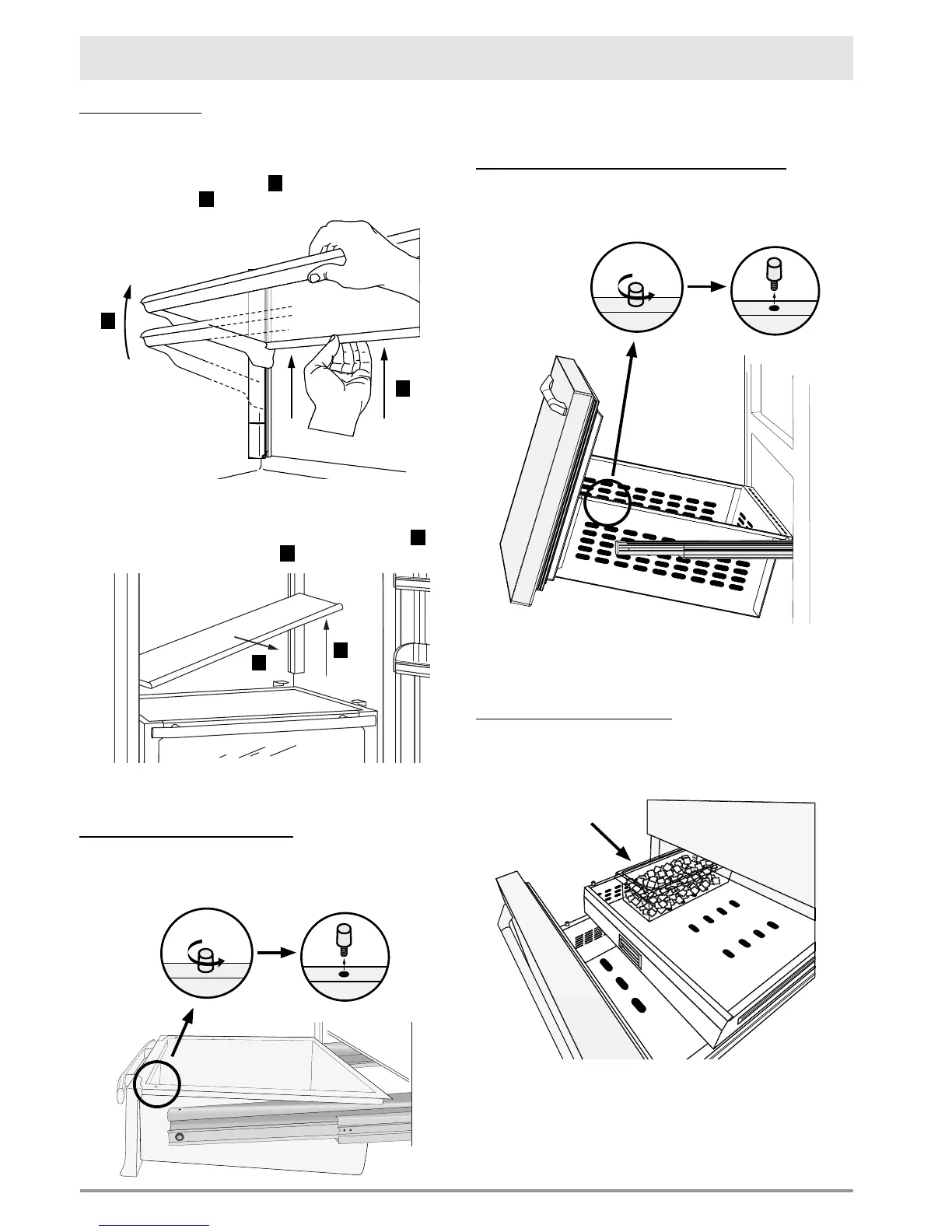 • To remove the two upper refrigerator compartment shelves,