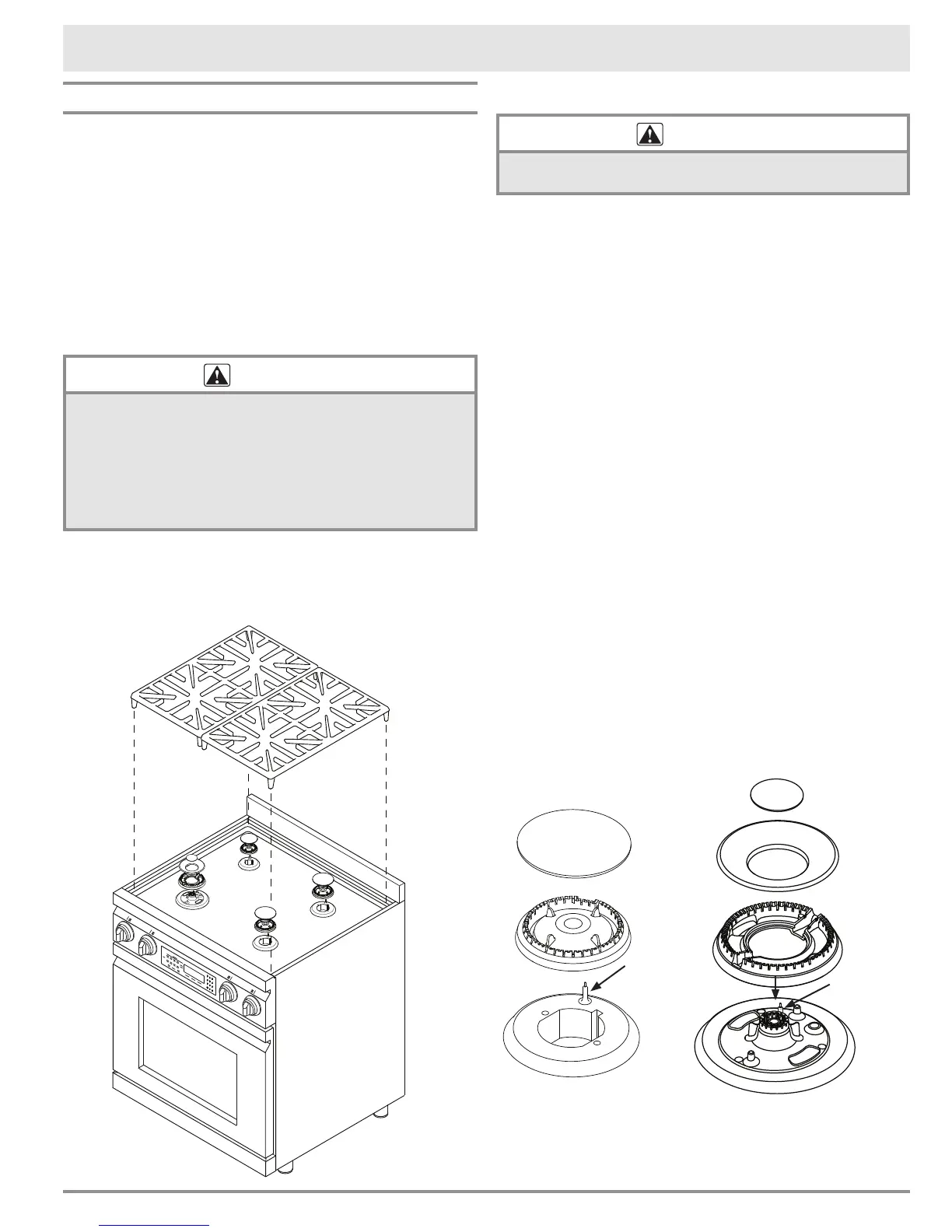 • Disassemble the burners. Lift the burner caps and