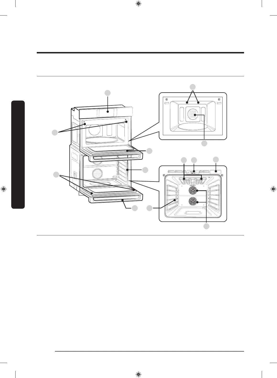 01 Panel de control 02 Traba de la puerta 03 Puerta del horno de