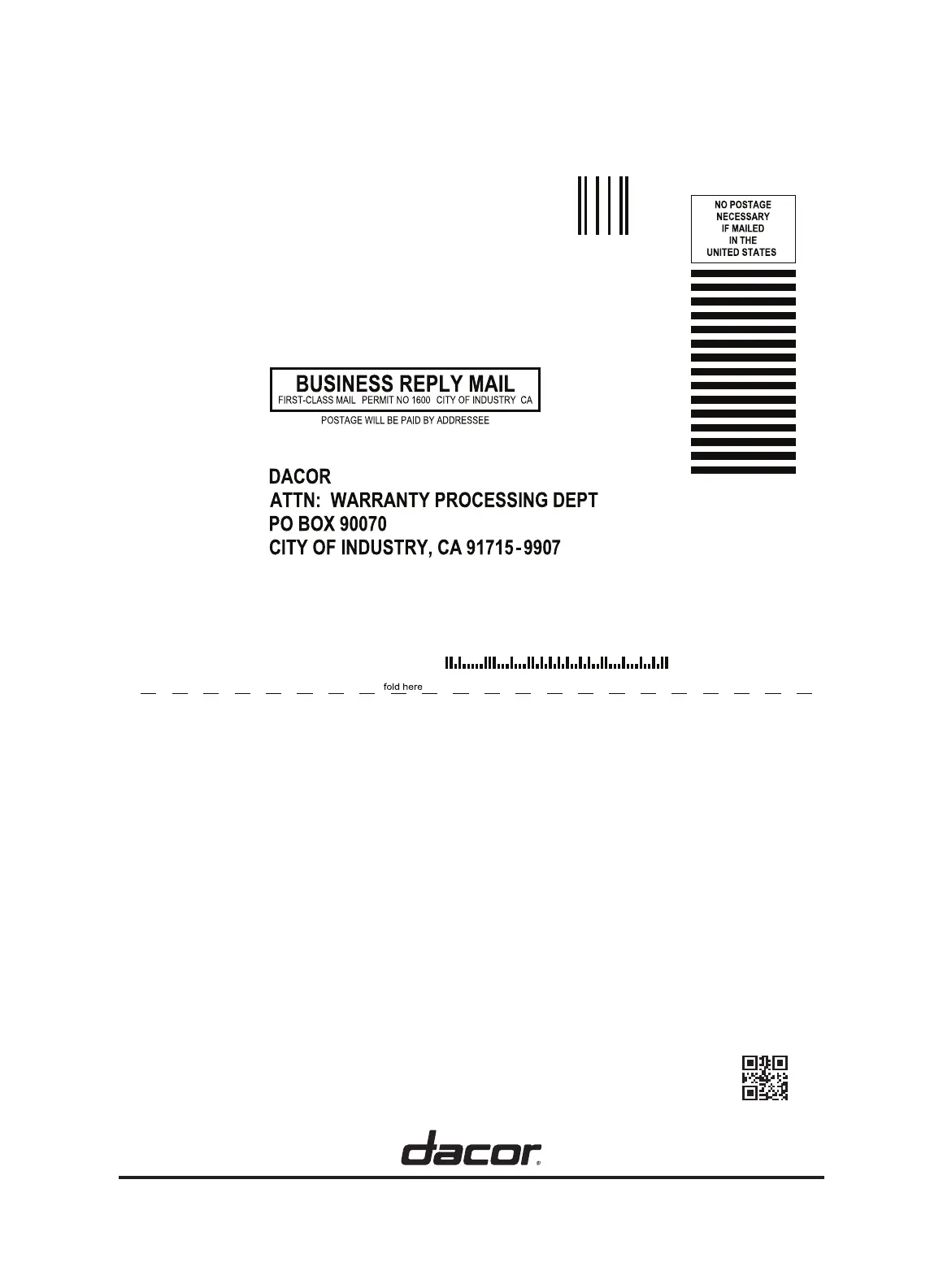 Dacor ∙ 14425 Clark Avenue, City of Industry, CA 91745 ∙ Phone: (800) 793-0093 ∙ Fax: (626) 403-3130 ∙ www.dacor.com