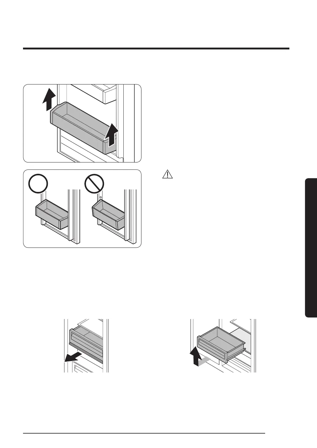 retirar los compartimientos de la puerta antes de retirar el cajón. Esto es para evitar que se