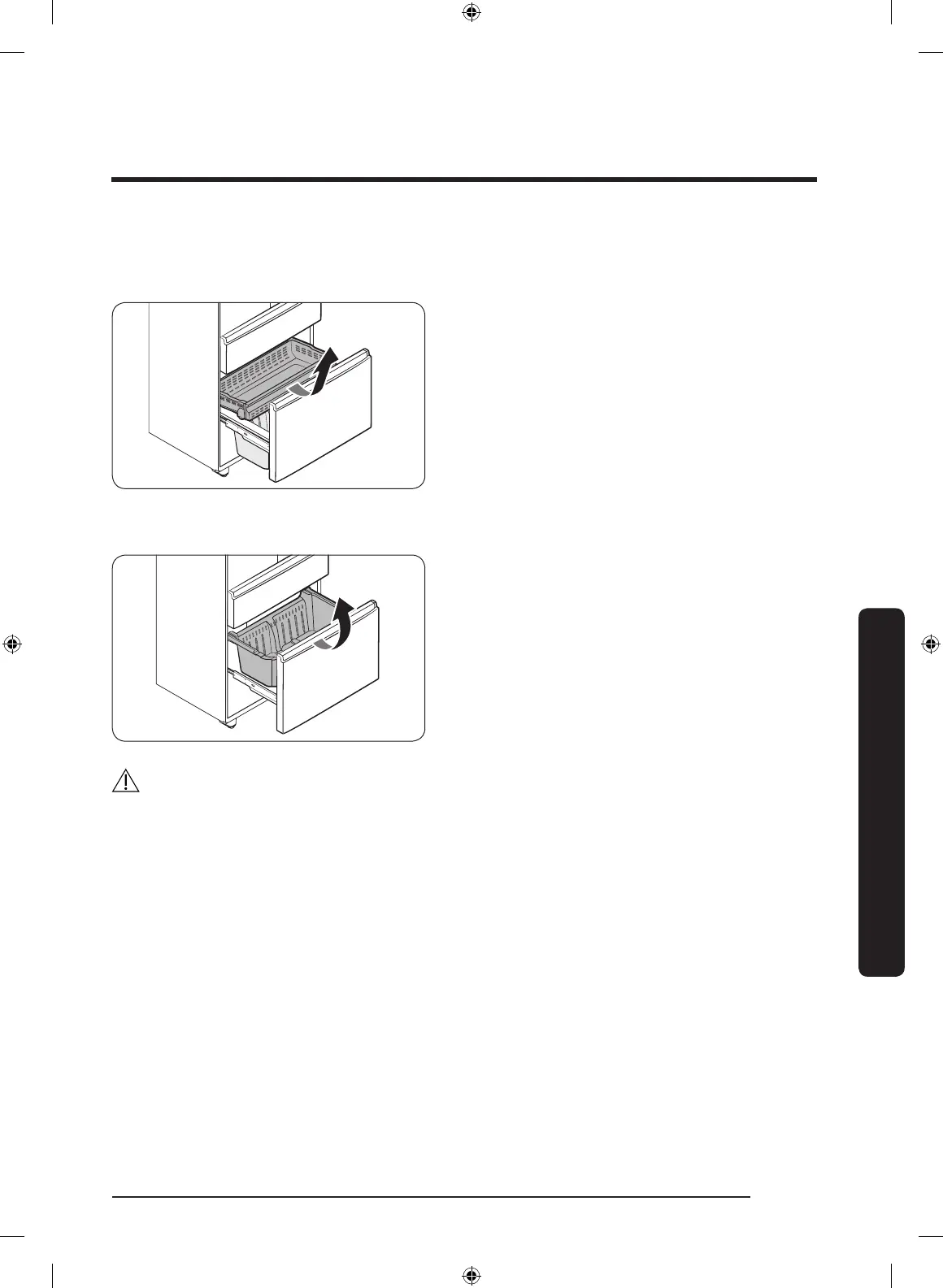 • Pour éviter toute blessure physique, tout dommage matériel ou étouffement, mettez les bacs