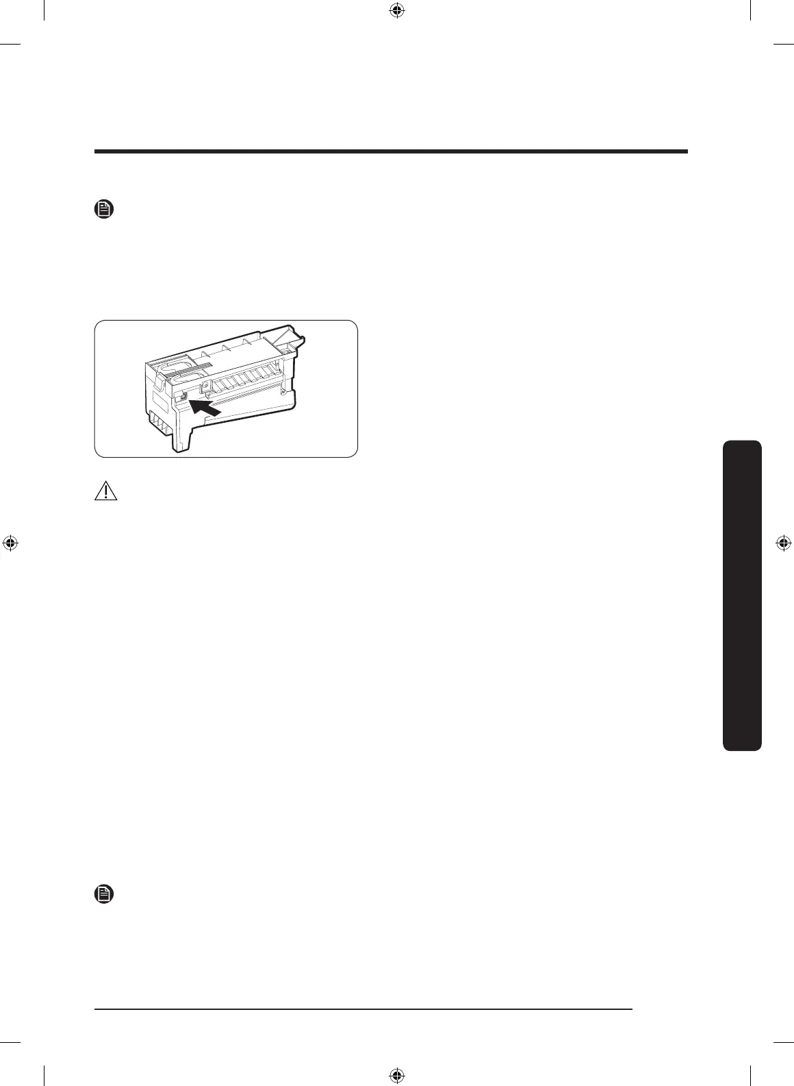 • When reinserting the ice maker tray, make sure that the tray is properly centered at