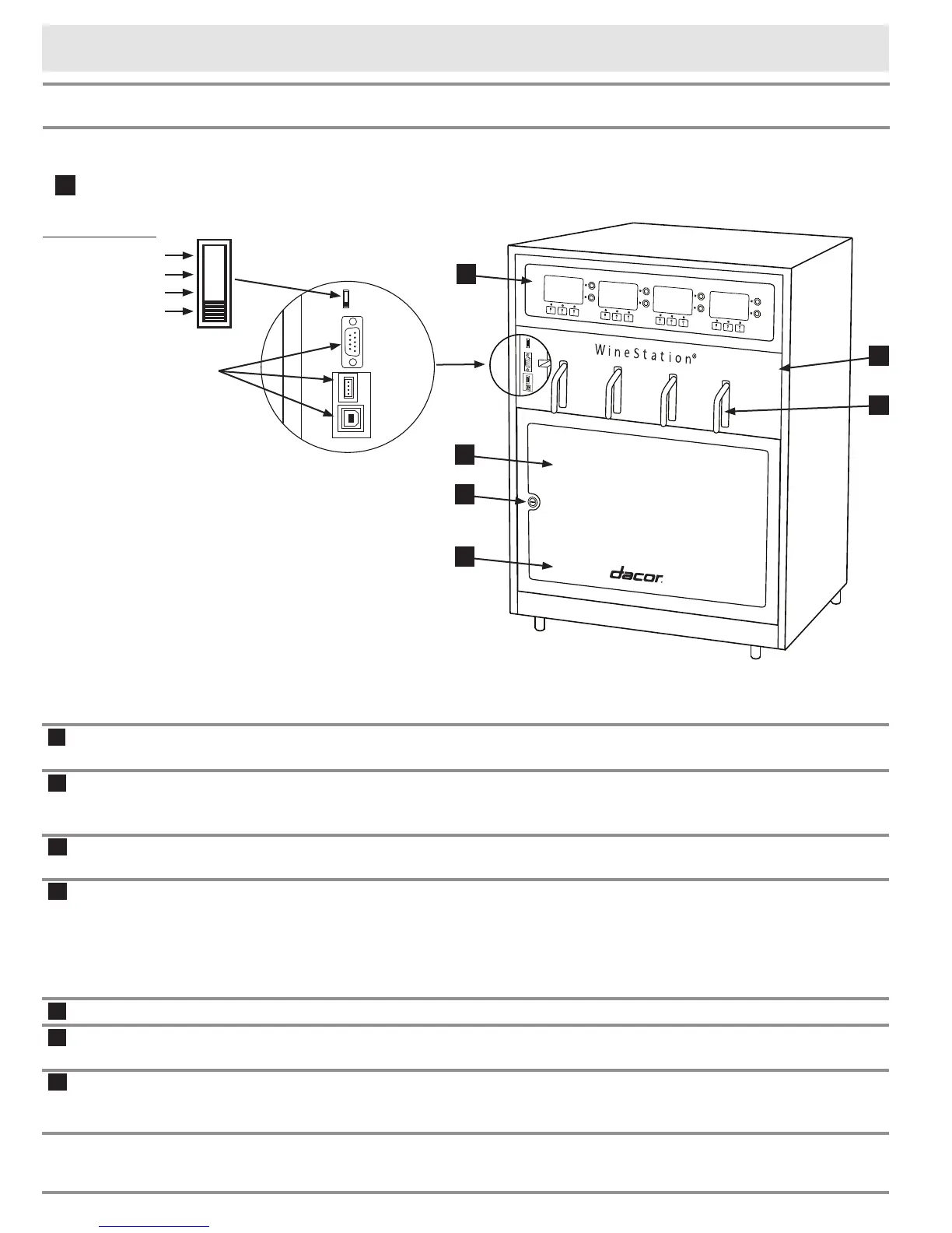 Control panel The control panel has a display and set of pour control buttons for each wine
