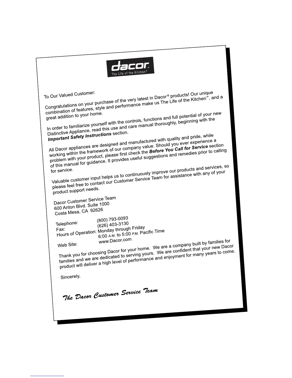 © 2010 Dacor, all rights reserved