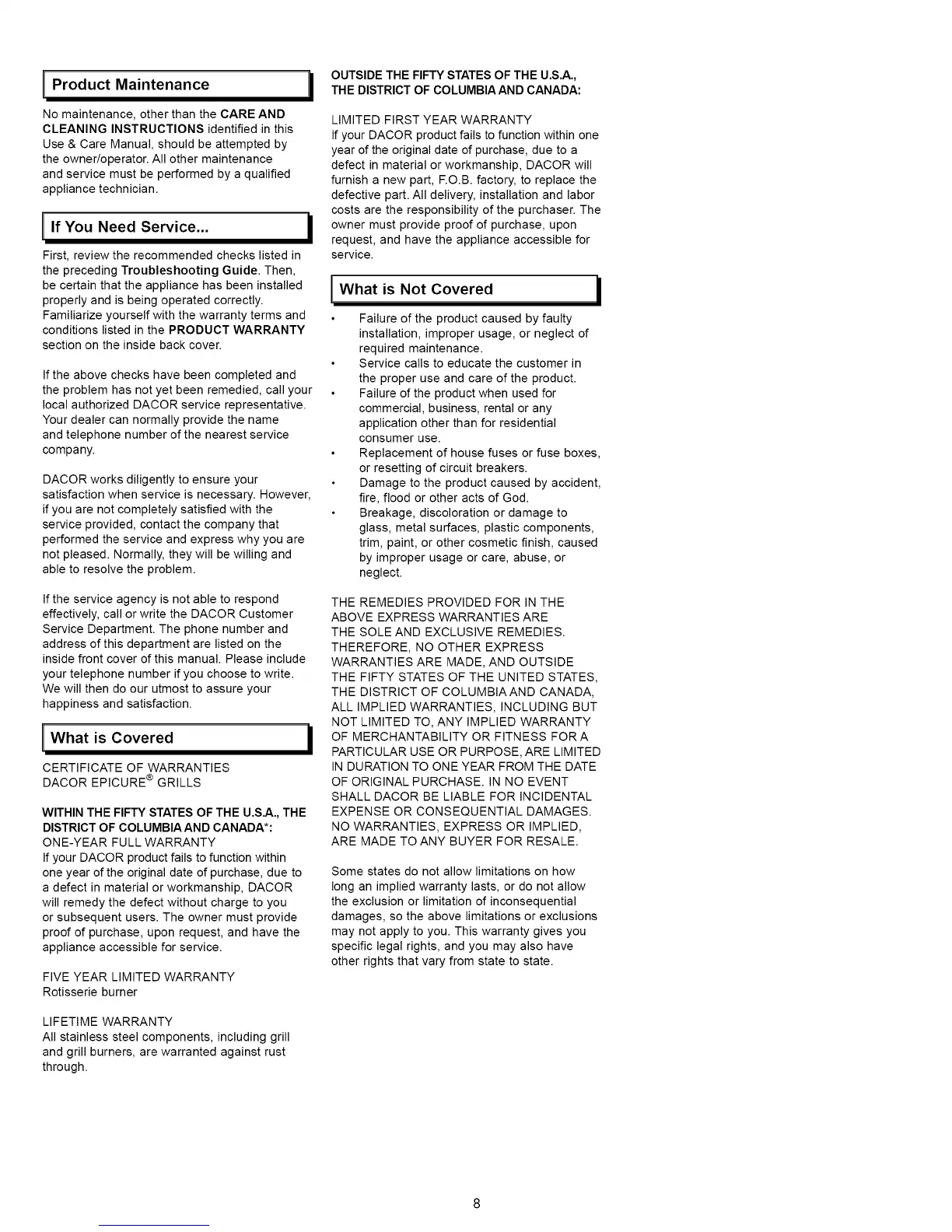 If your DACOR product fails to function within