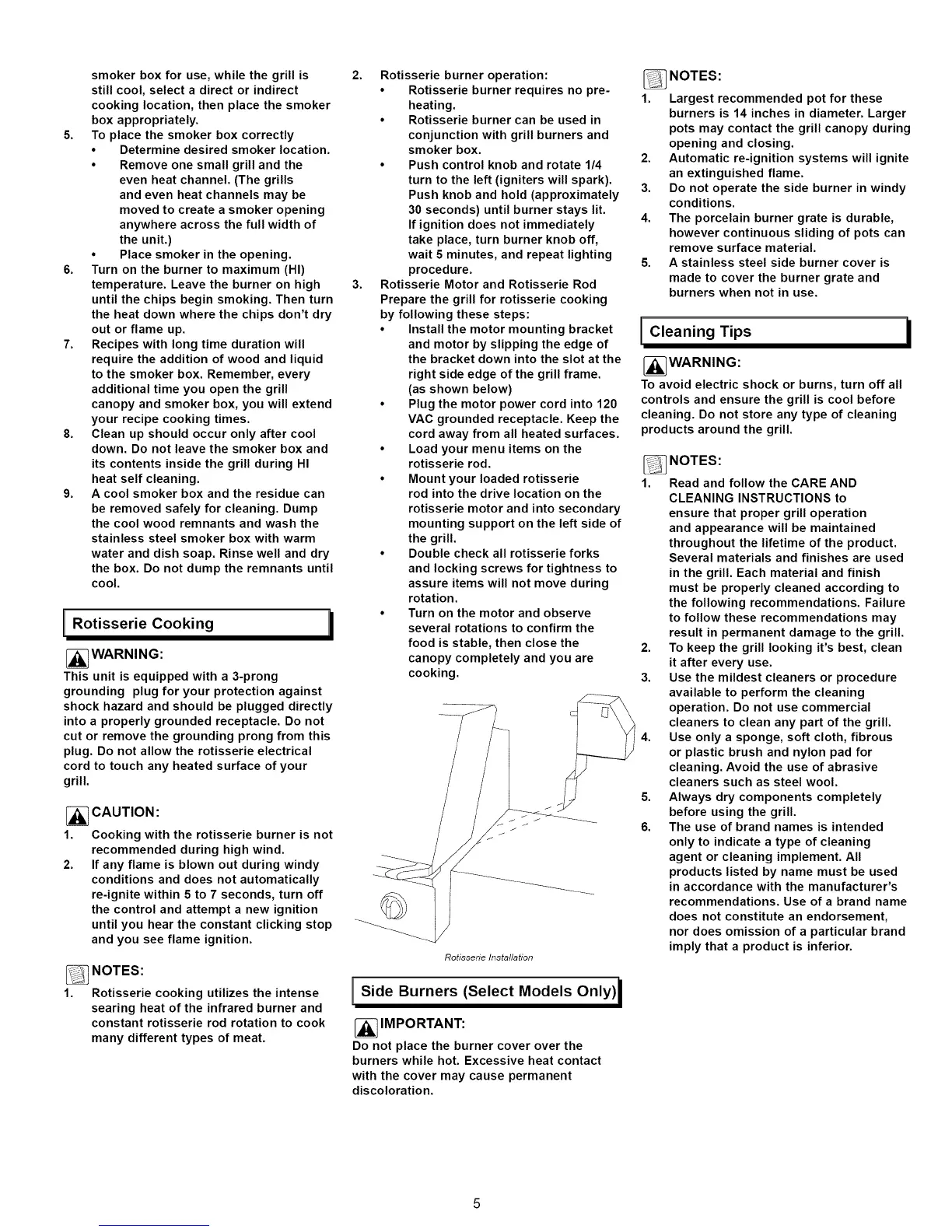 • Rotisserie burner requires no pre- 1.