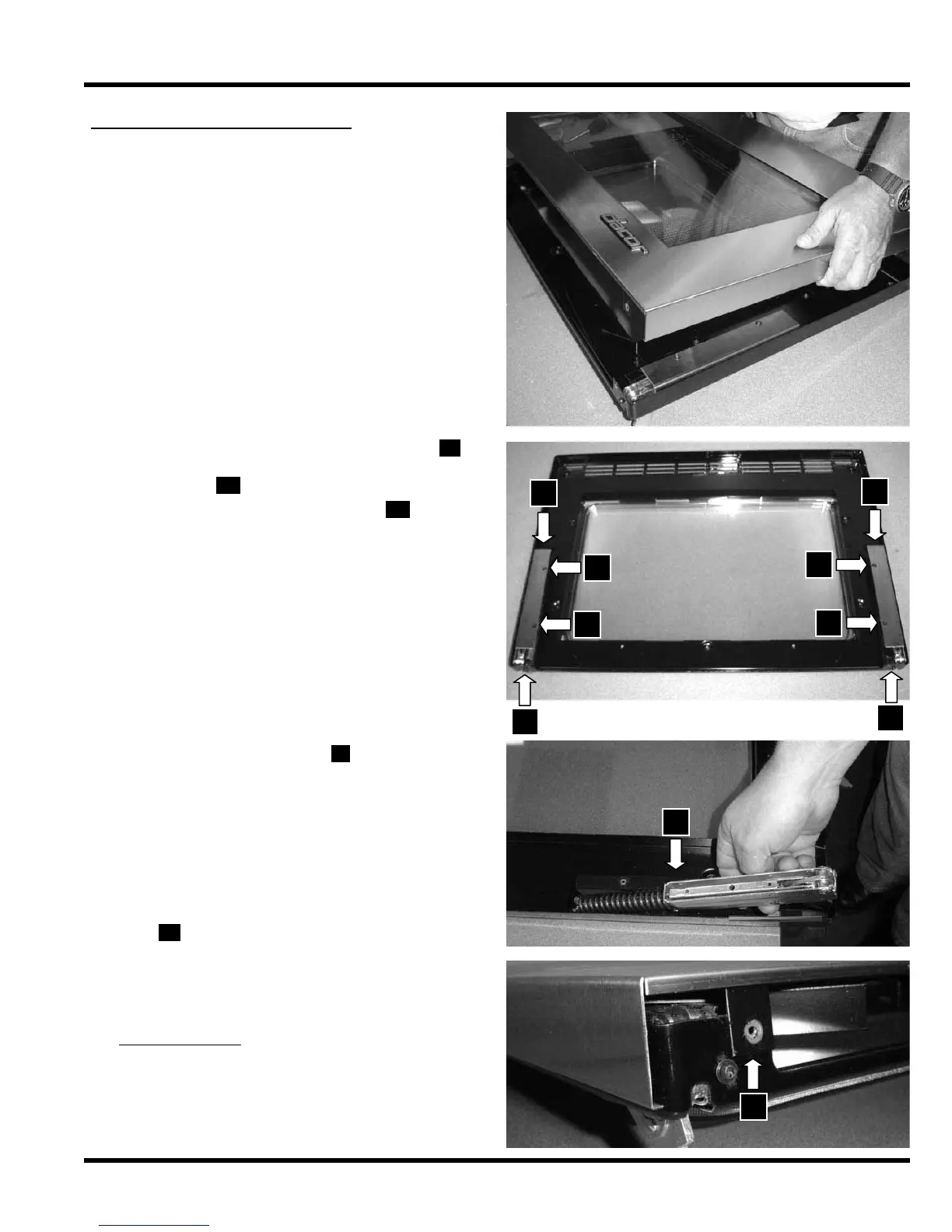 Remove the two (2) hinge cover screws F