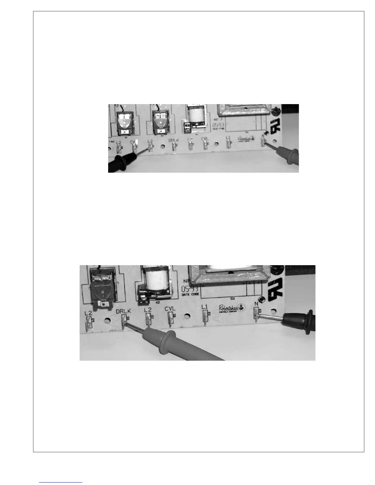 points. Should have 120 Volts. If no voltage is present replace relay board.