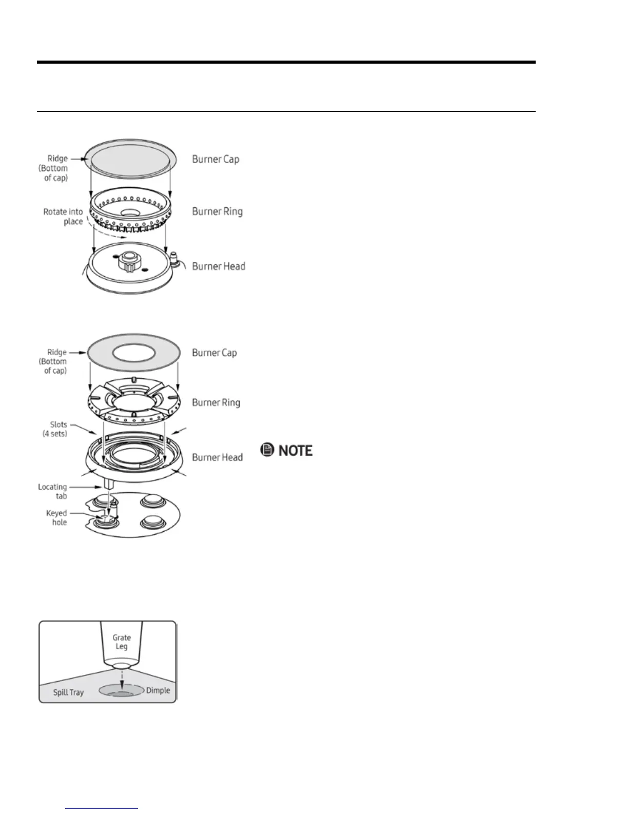 2. Place the burner cap so the ridge on the bottom of the