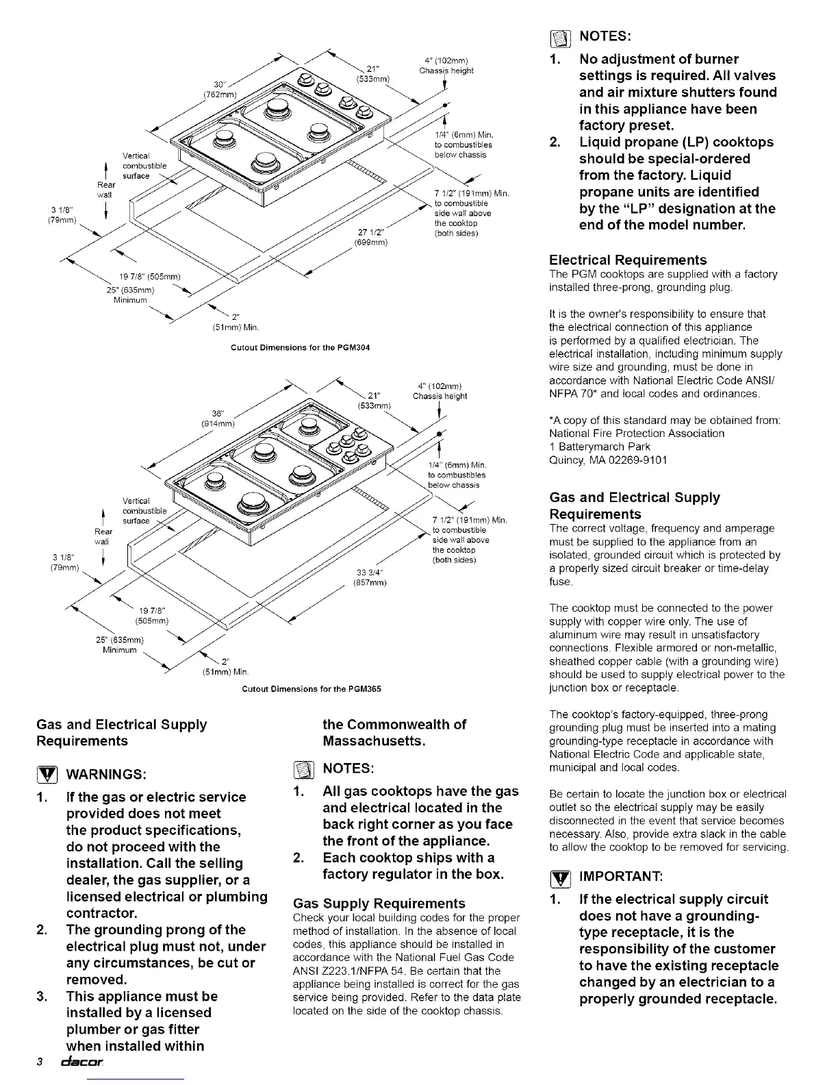 1. All gas cooktops have the gas