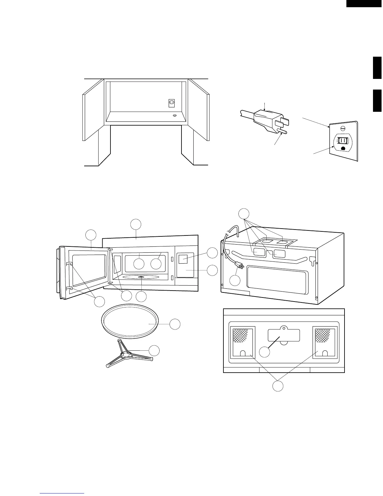 a grounded receptacle. The receptacle should be located inside the cabinet directly above the Microwave Oven/Hood