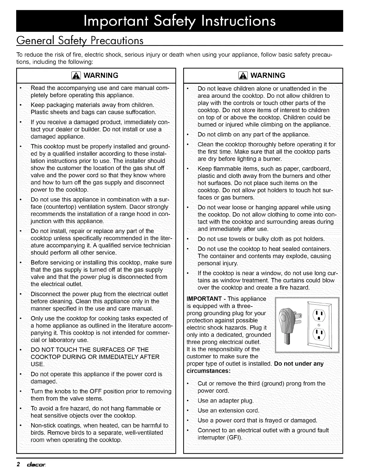 face (countertop) ventilation system. Dacor strongly
