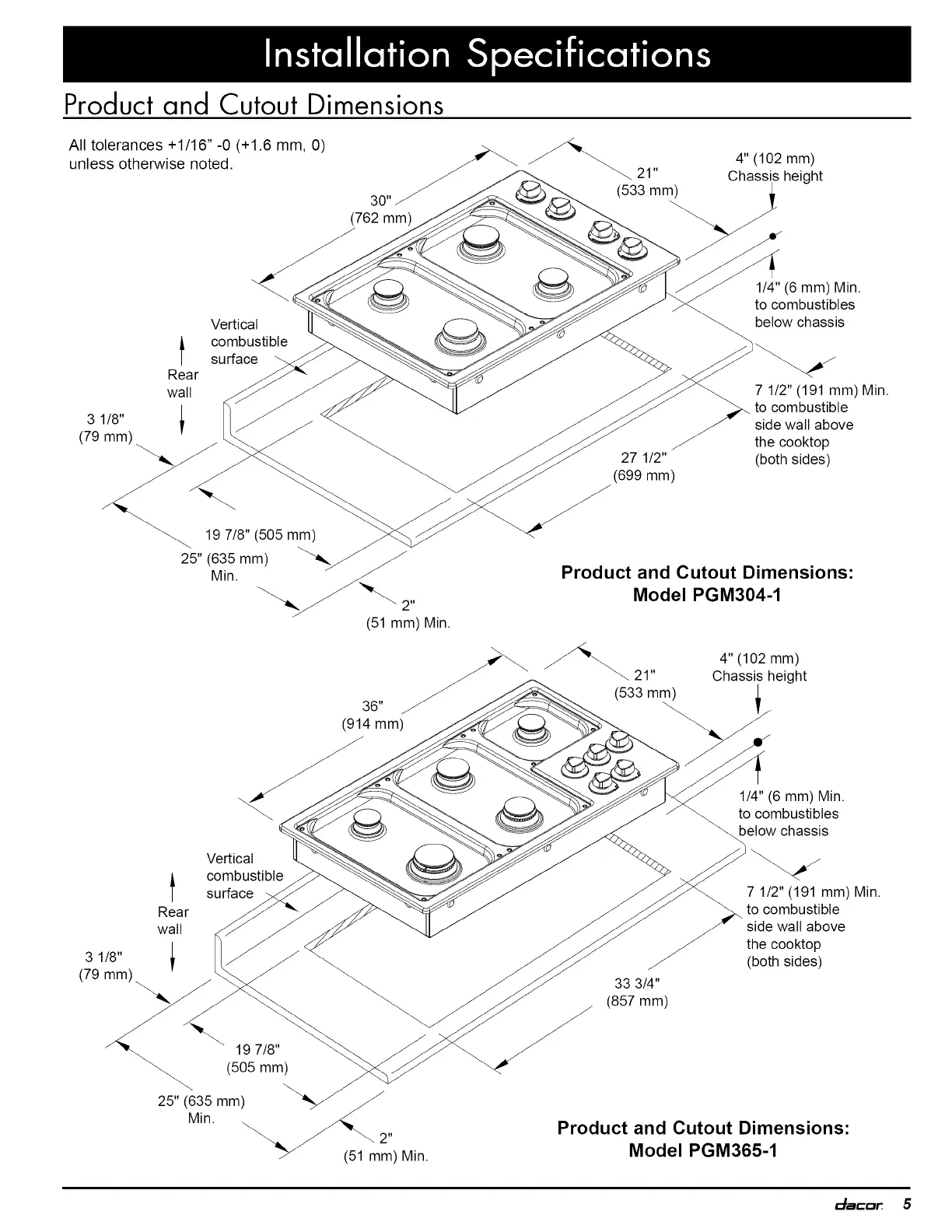 Dacor Preference PGM365-1 - Product and Cutout Dimensions