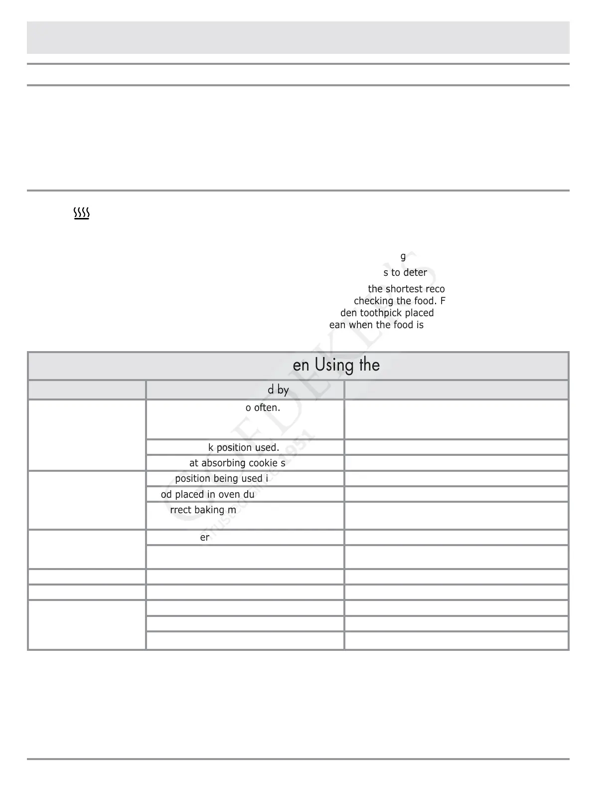 Incorrect baking mode being used. See Select from the Following on page 10