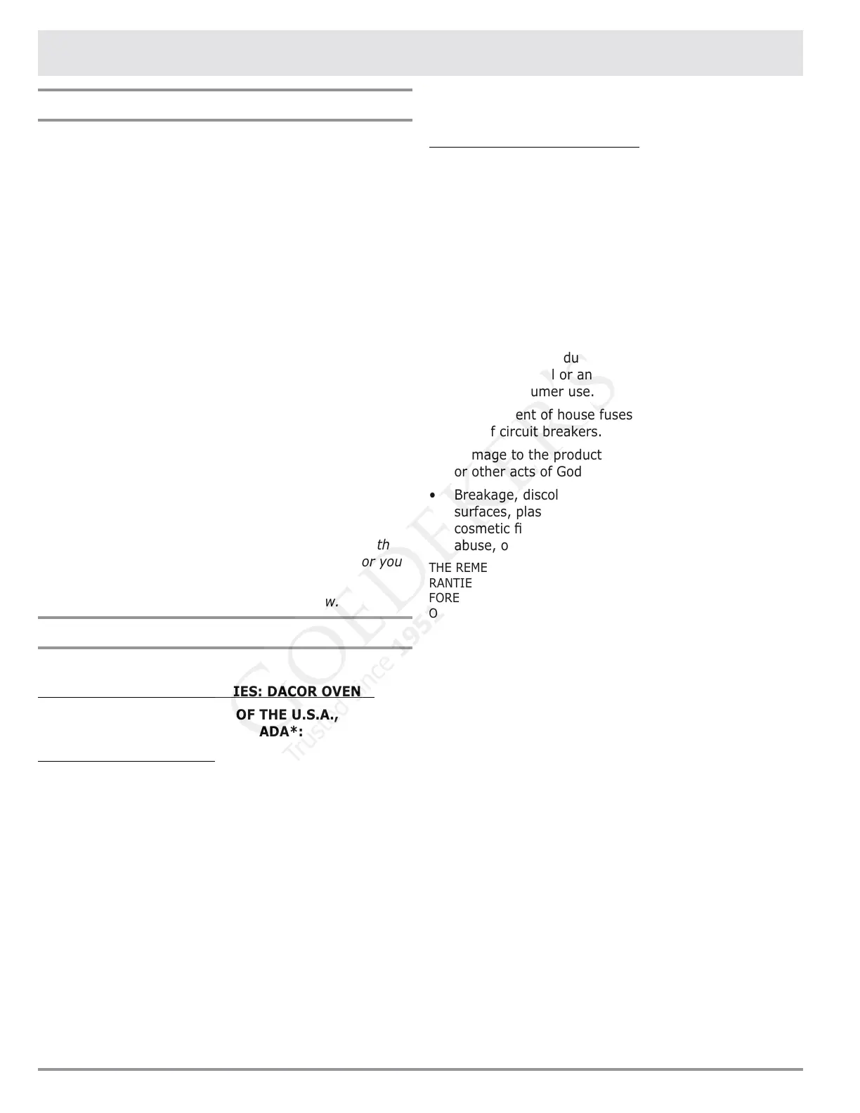 or workmanship, DACOR will furnish a new part, F.O.B.