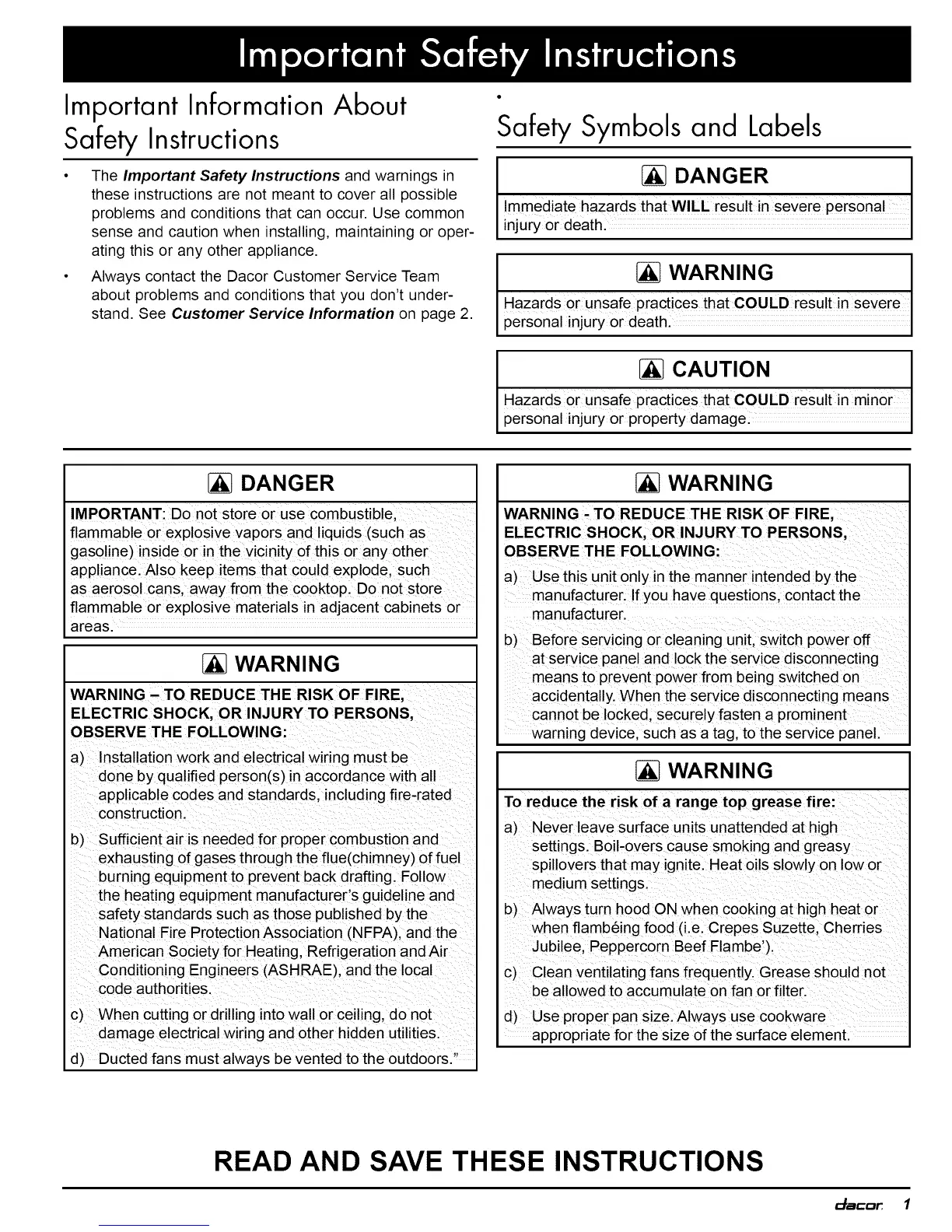 WARNING - TO REDUCE THE RISK OF FIRE,