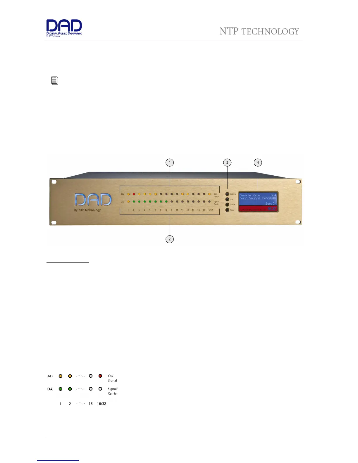 1. 16 LED indicators for signal level indication of the analogue AD input.