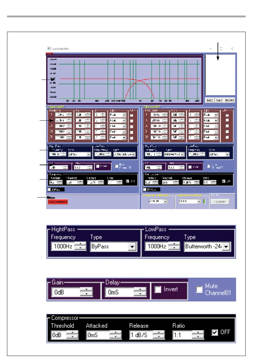 Threshold level Time attack Release time Compression ratio On/O switch