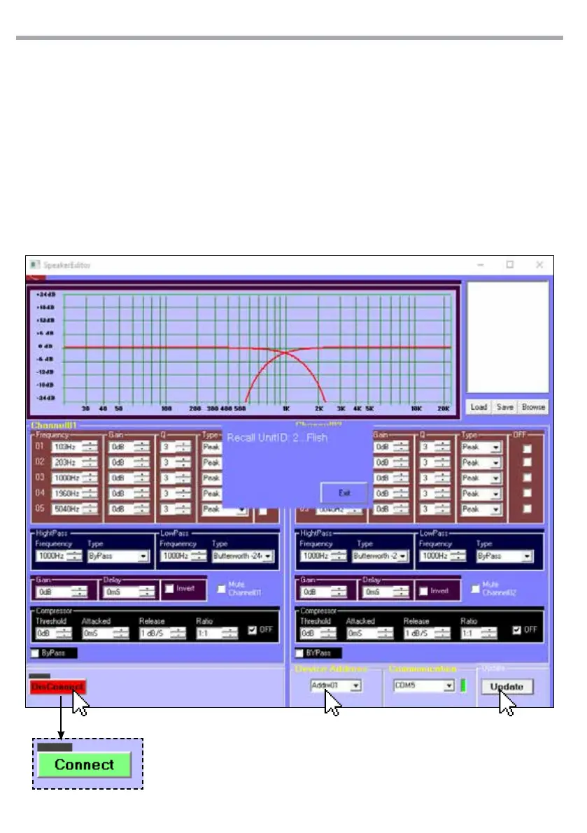 • Click on “DisConnect”to switch on the DSP.