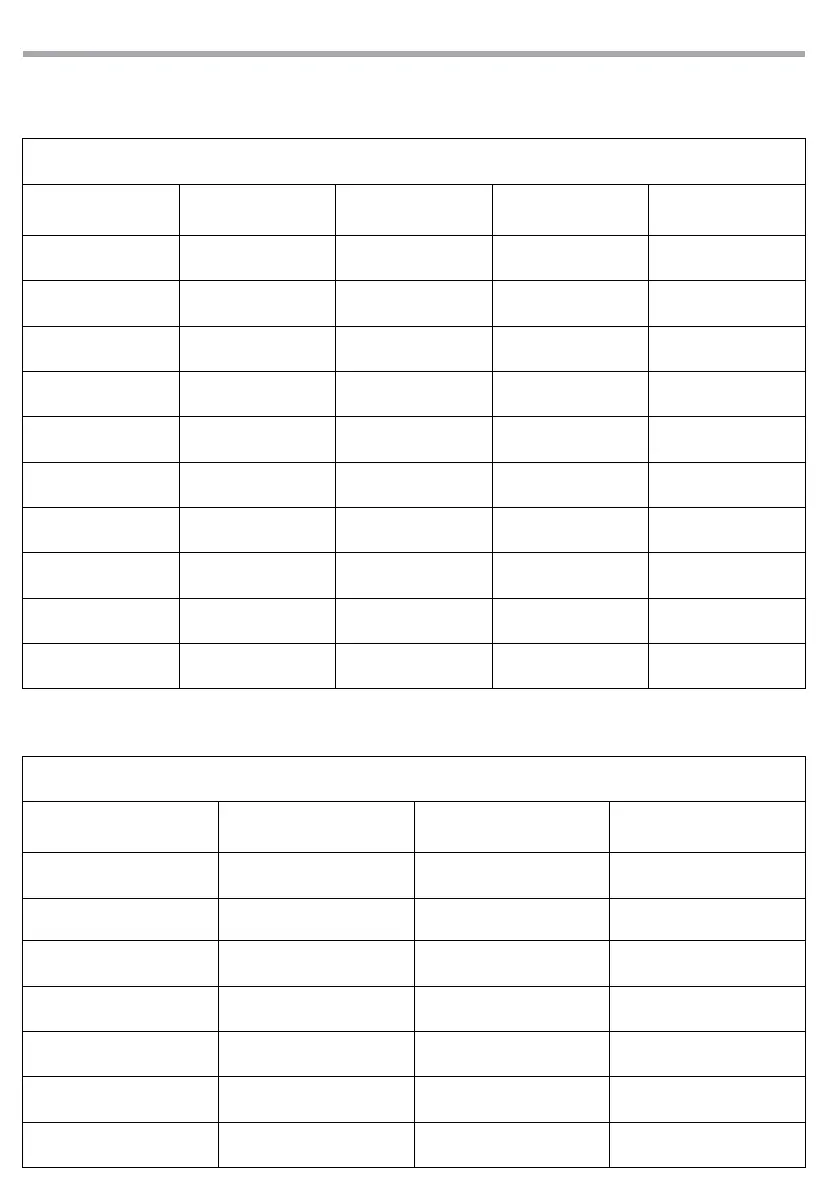TABELLA PER IL SETTAGGIO DEL COMPRESSORE TABLE FOR COMPRESSOR SETTINGS