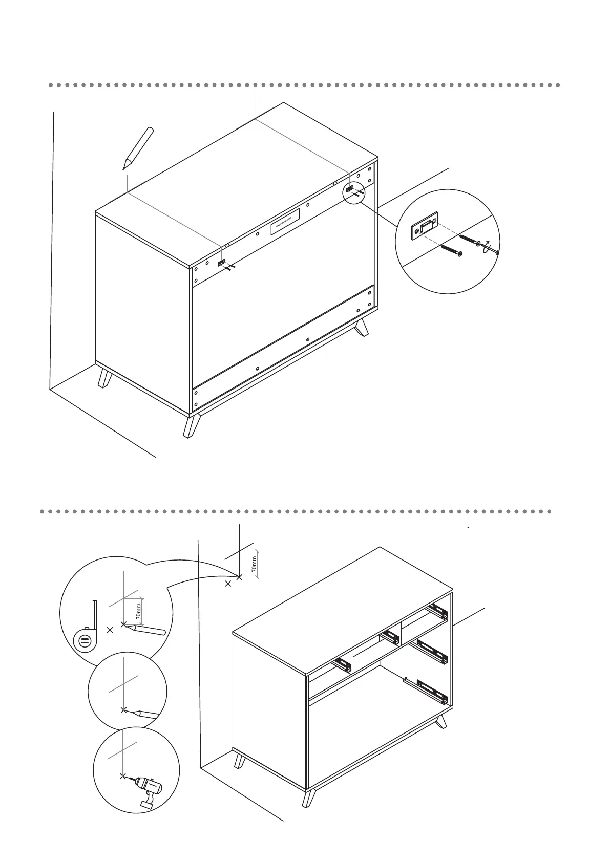 make two pencil marks on the wall at the