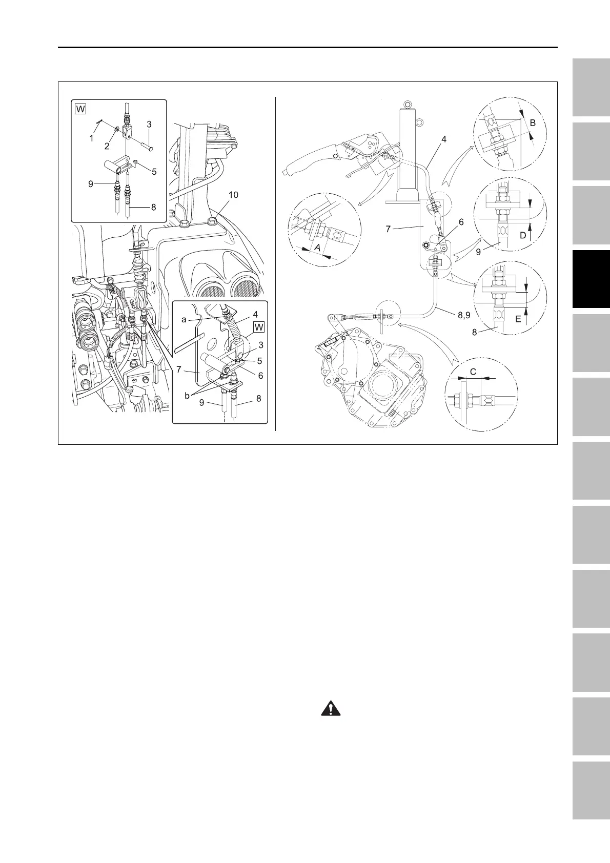 2. Loosen the lock nut (a) of the parking brake wire (4)
