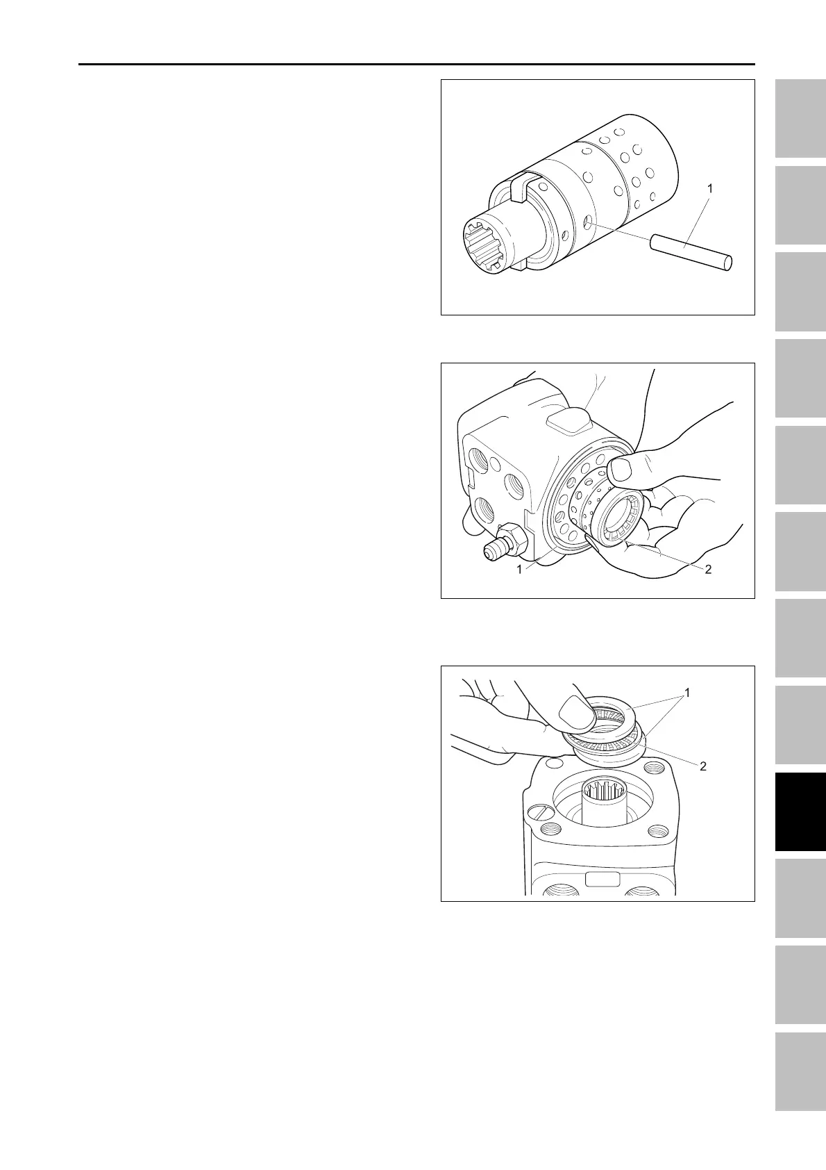 7. Insert a thrust bearing race (1), the thrust bearing