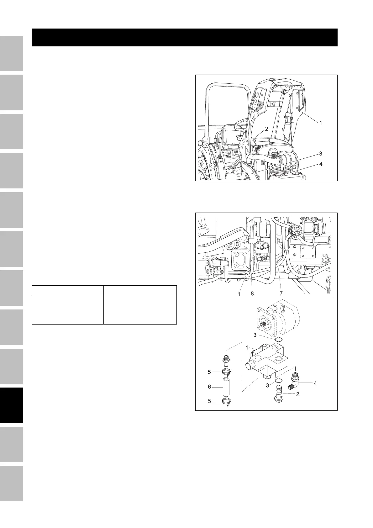 1. Remove the hoses (6, 7) and hydraulic tube P1 (8).