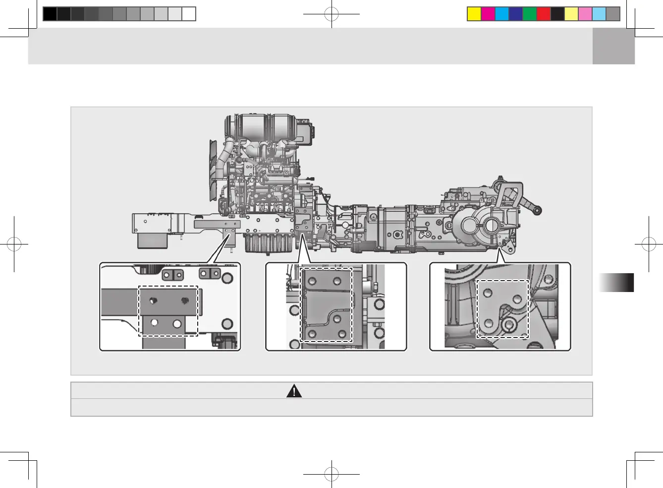 [Front axle frame] [Flywheel housing] [Rear axle & transmission]