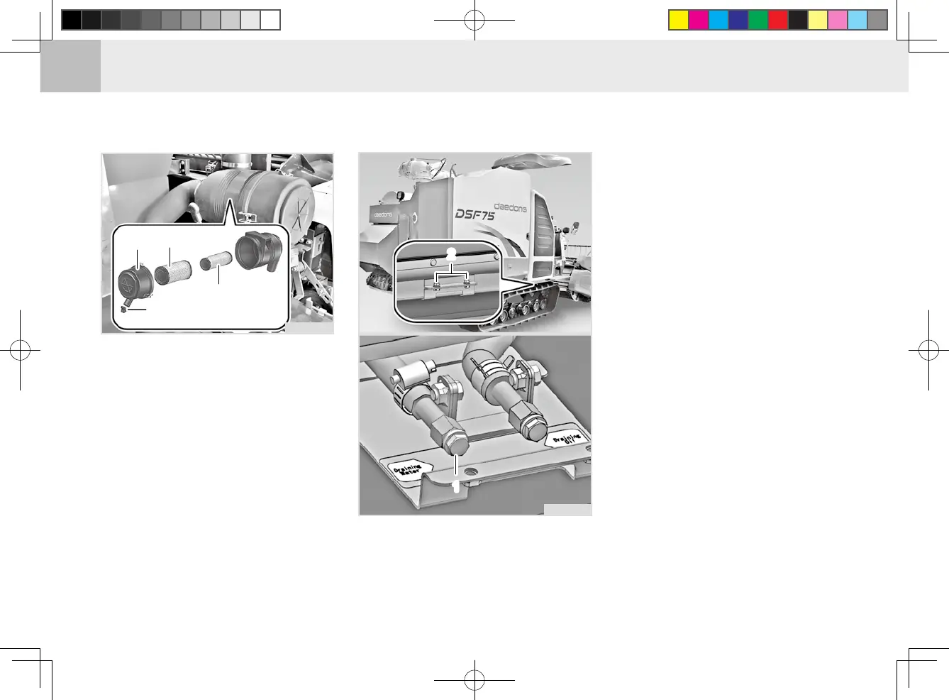 of the crawler and open the drain