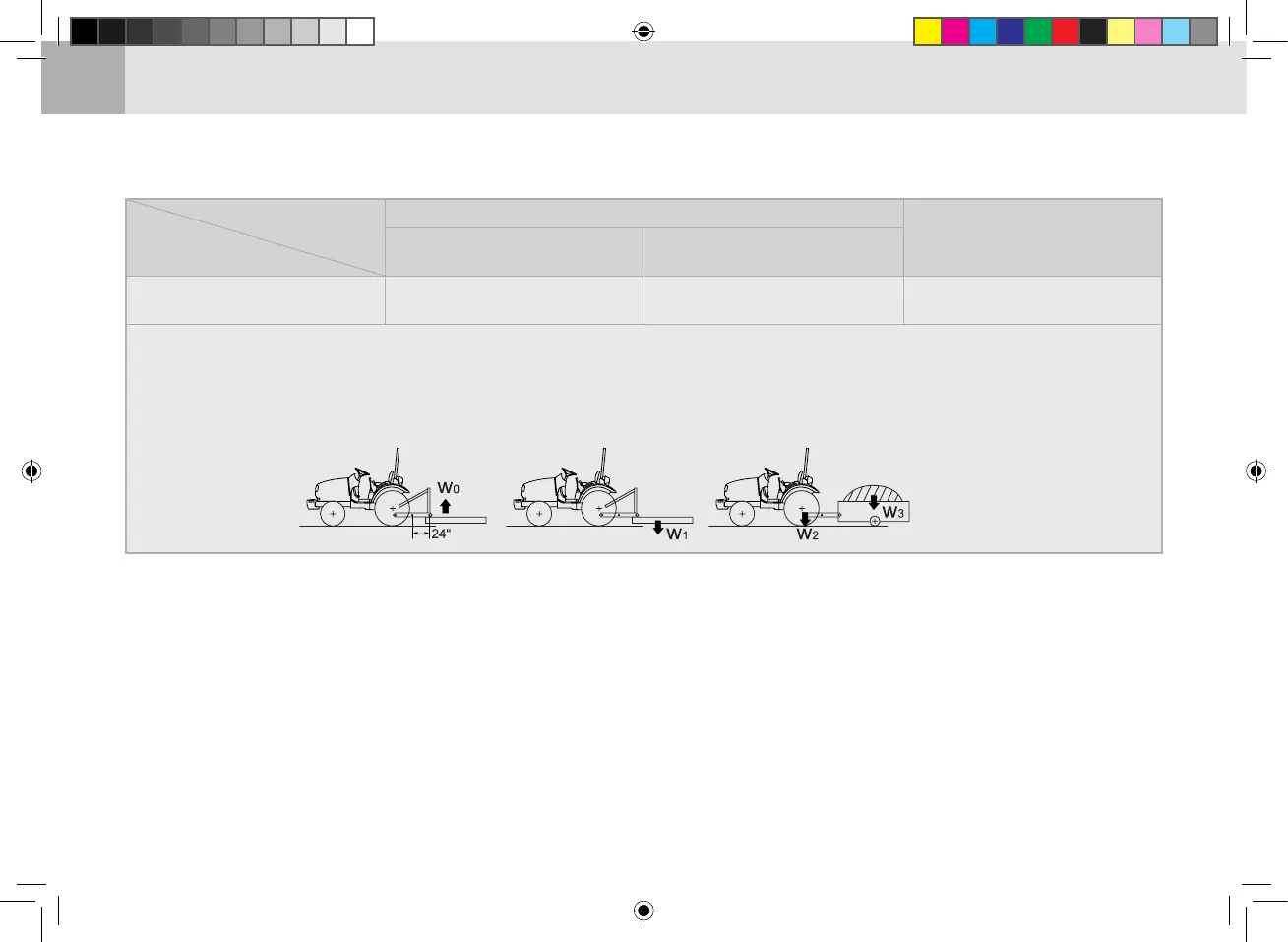 Lifting Capacity max. loading weight ............. The max. allowable load which can be put on the 24 in. aft of hitch : W
