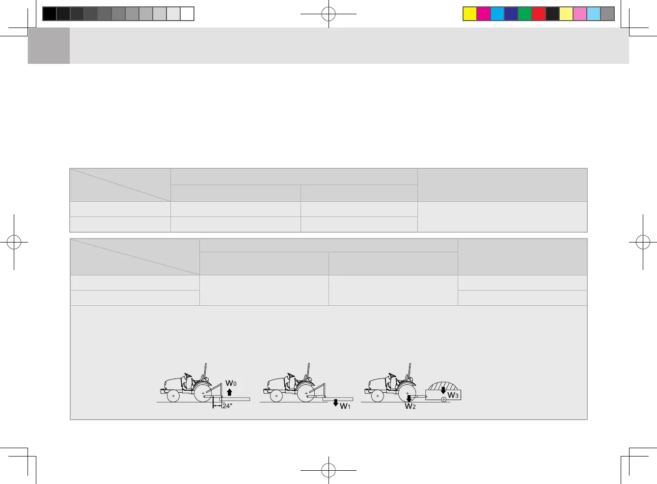 Lifting Capacity max. loading weight .............The max. allowable load which can be put on the 24 in. aft of hitch : W