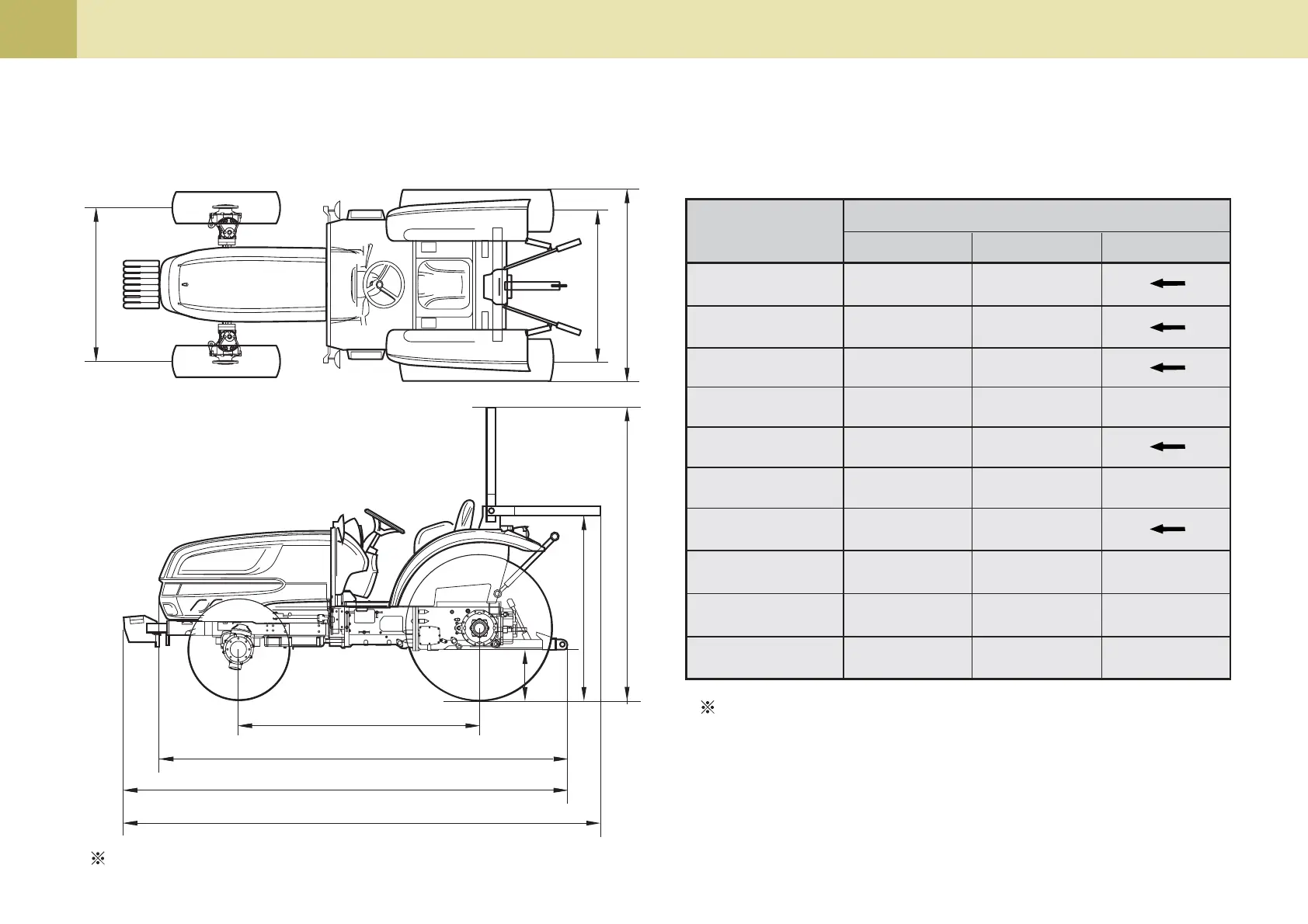 These dimensions are measured with the standard tires installed to the ROPS model tractor.