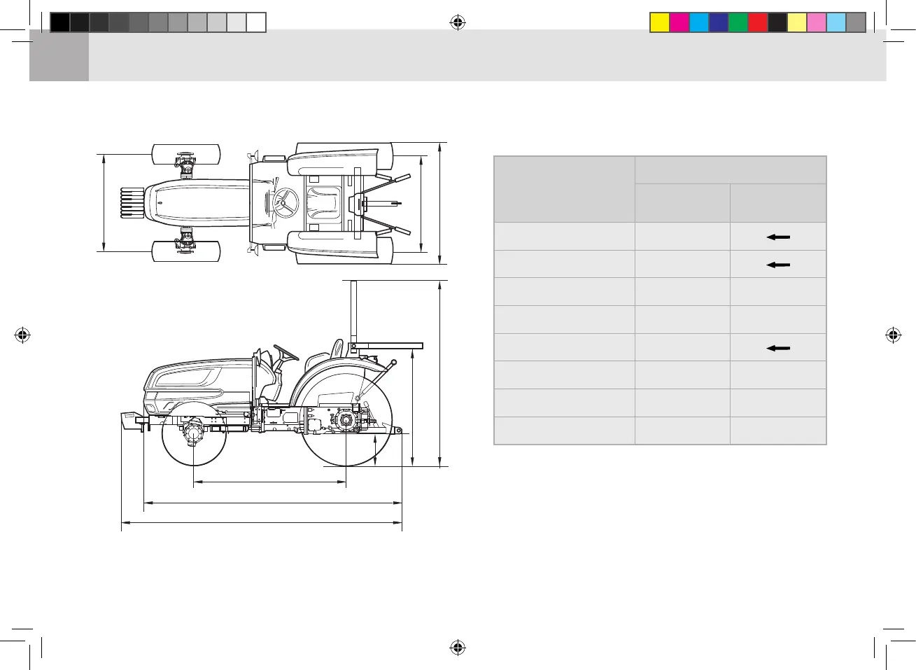 These dimensions are measured with standard tires (AG) installed on the ROPS model tractor.