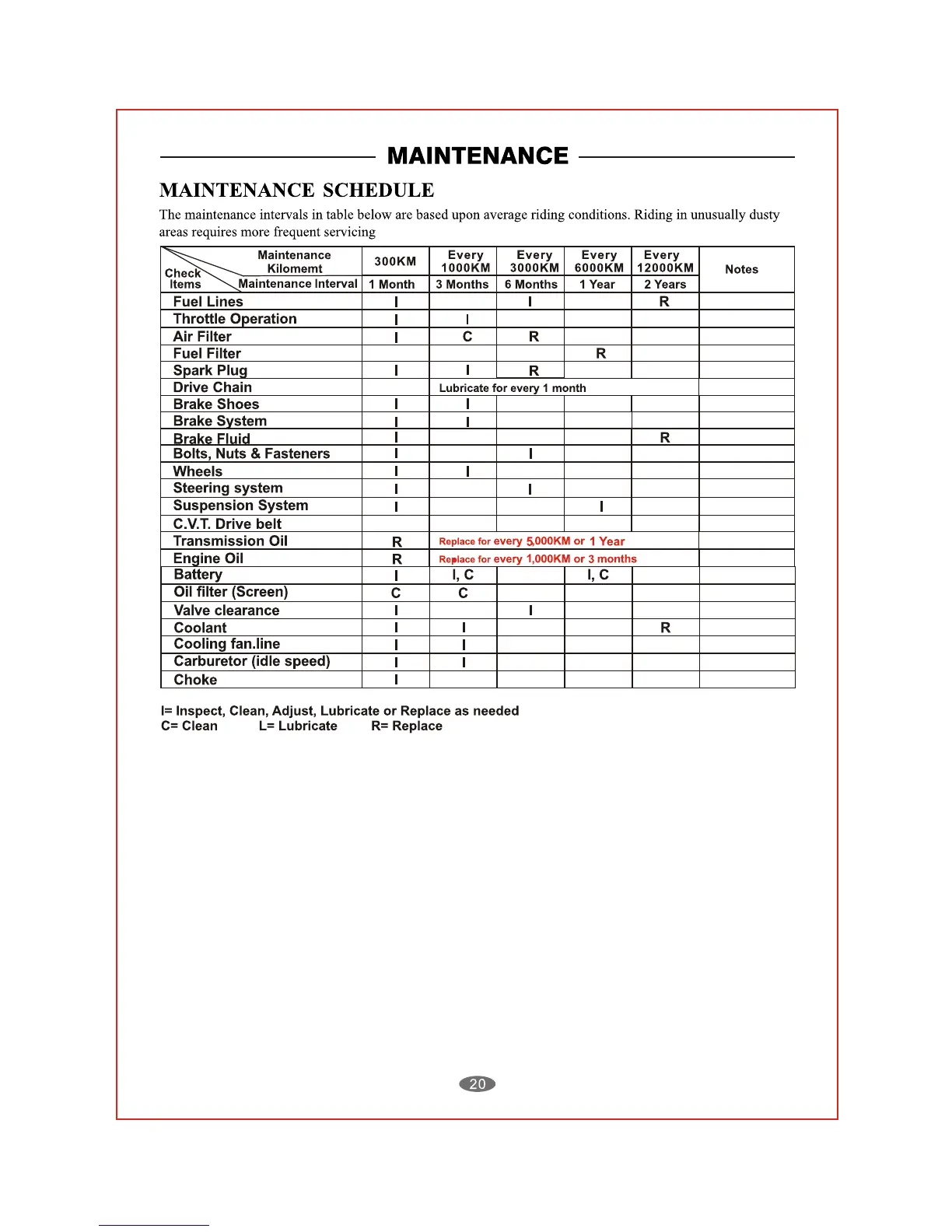 DAELIM ET250 - Maintenance Schedule