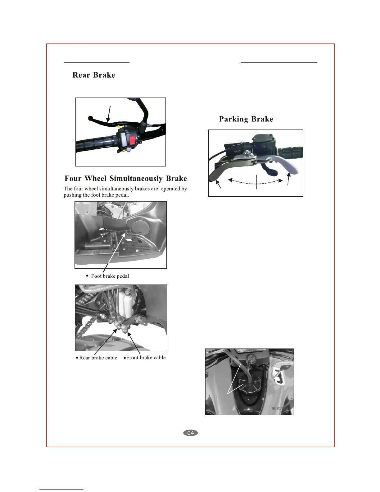 The rear brake is controlled by the long brake