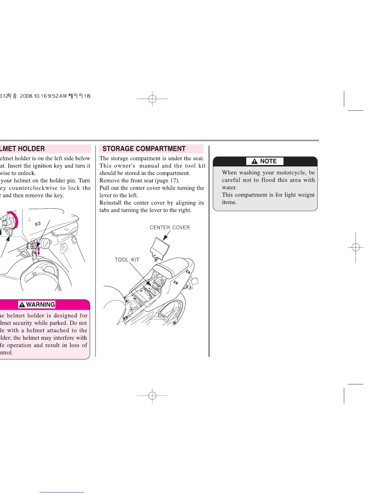 DAELIM ROADWIN FI - CATALOG - Helmet Holder; Storage Compartment