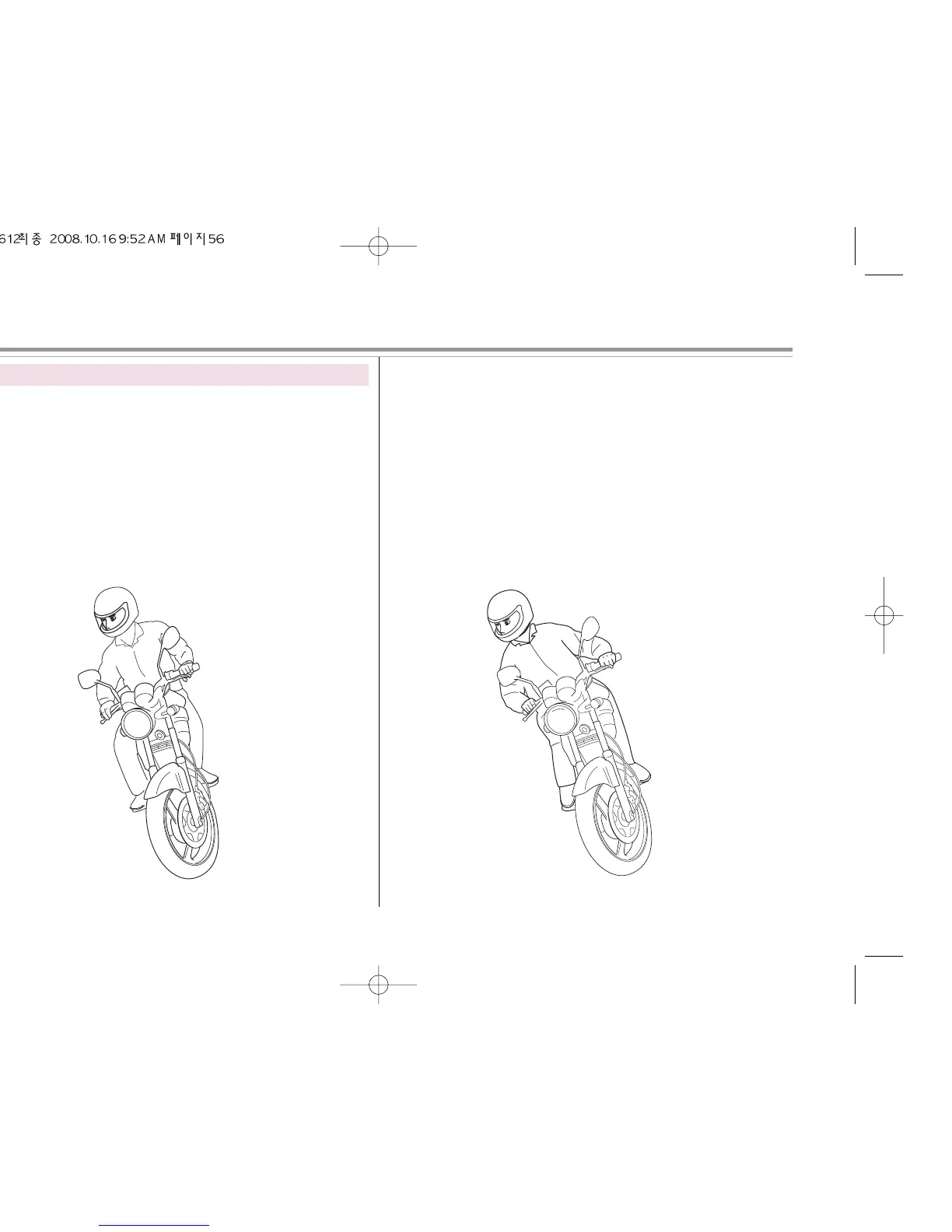 This is a turning position with motorcycle and driver in a line.