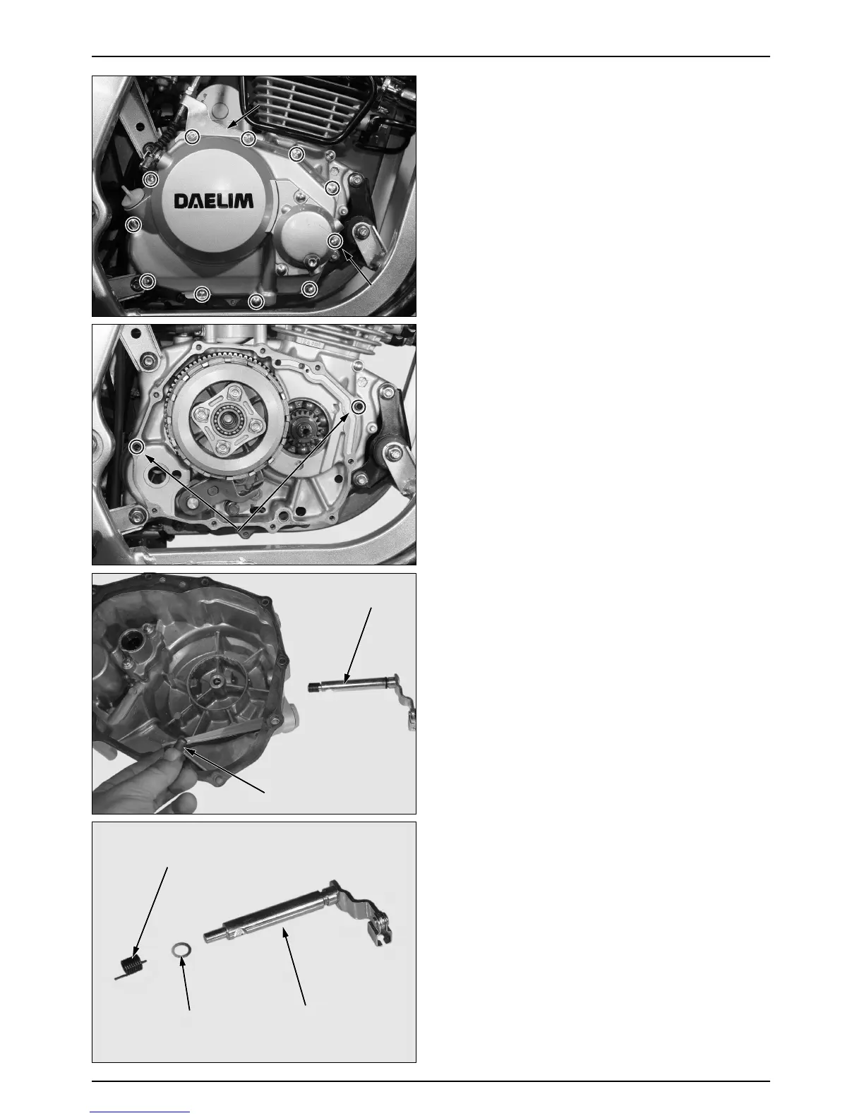 ● Remove the clutch lever and spring from the R.