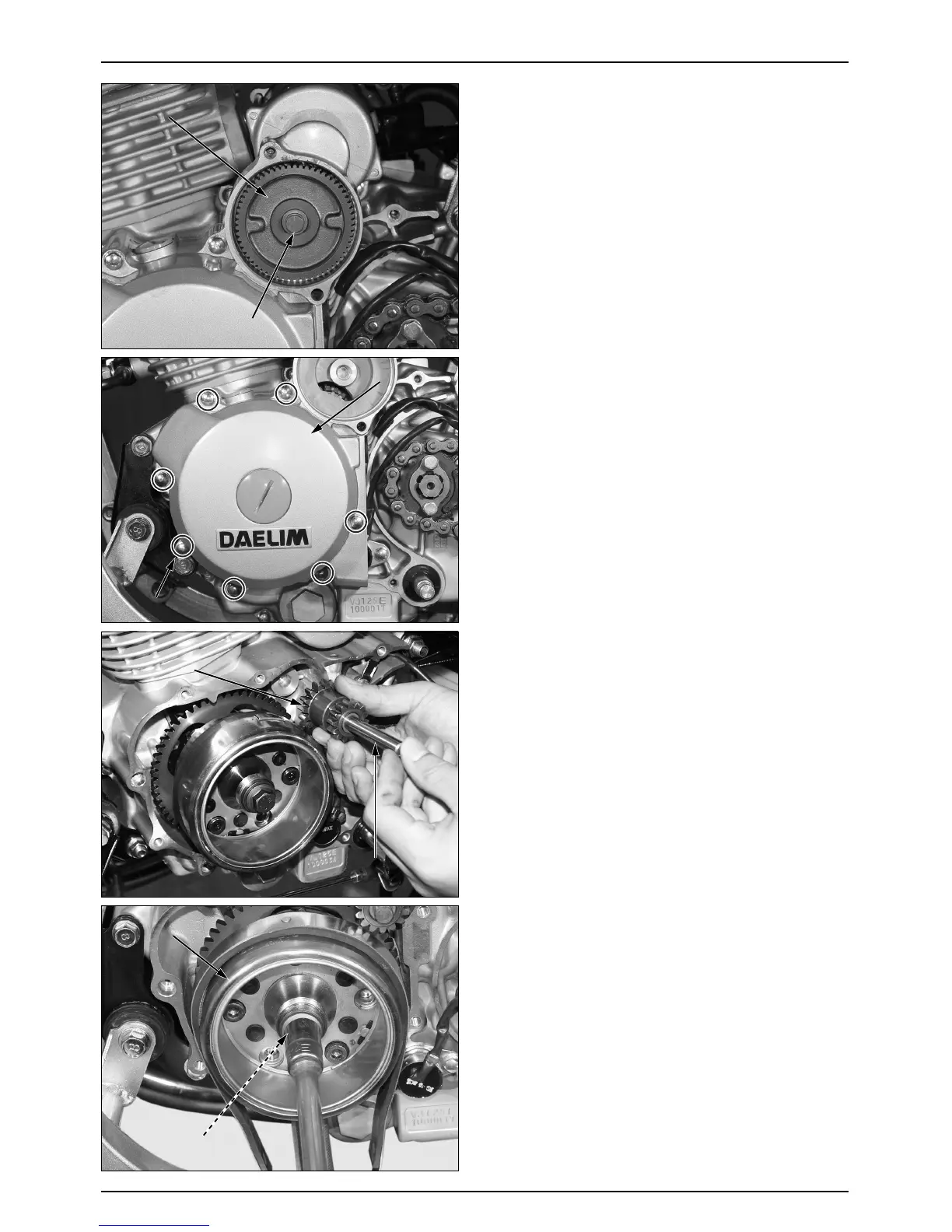 ● Remove the left crankcase cover bolts and left