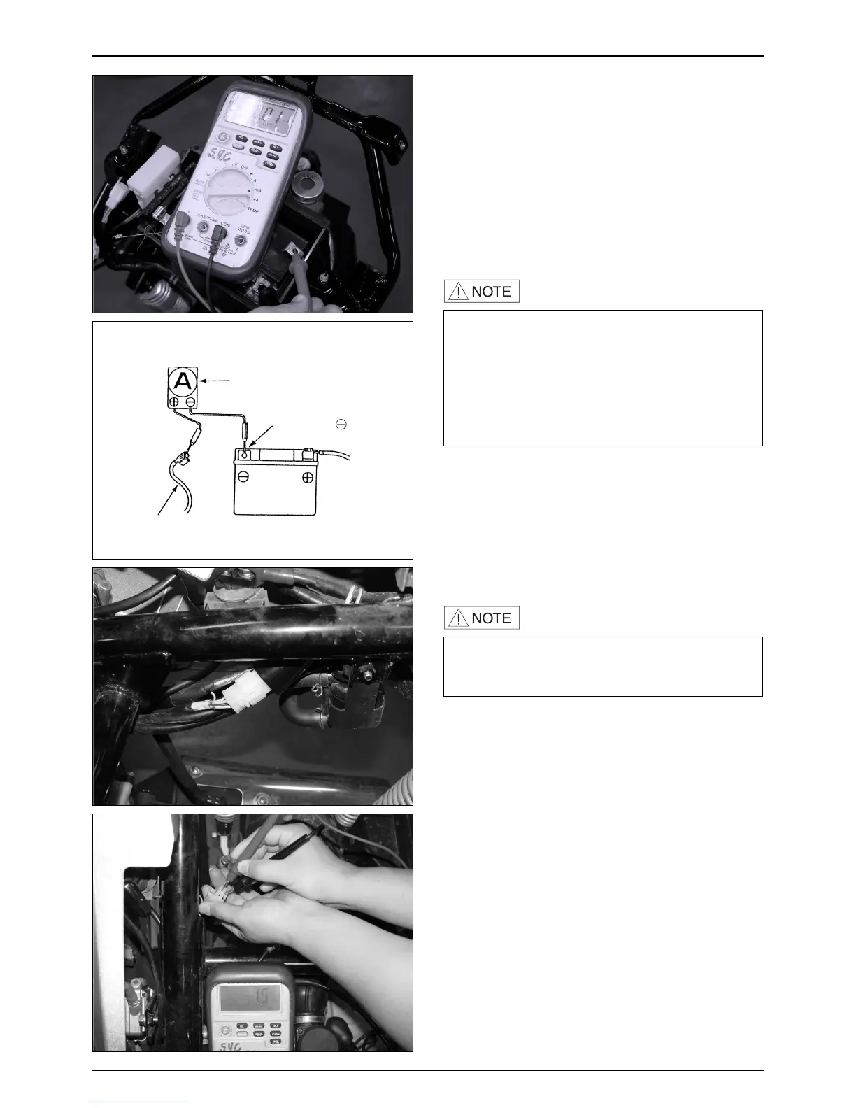 ● Connect an ampere meter between negative (-)
