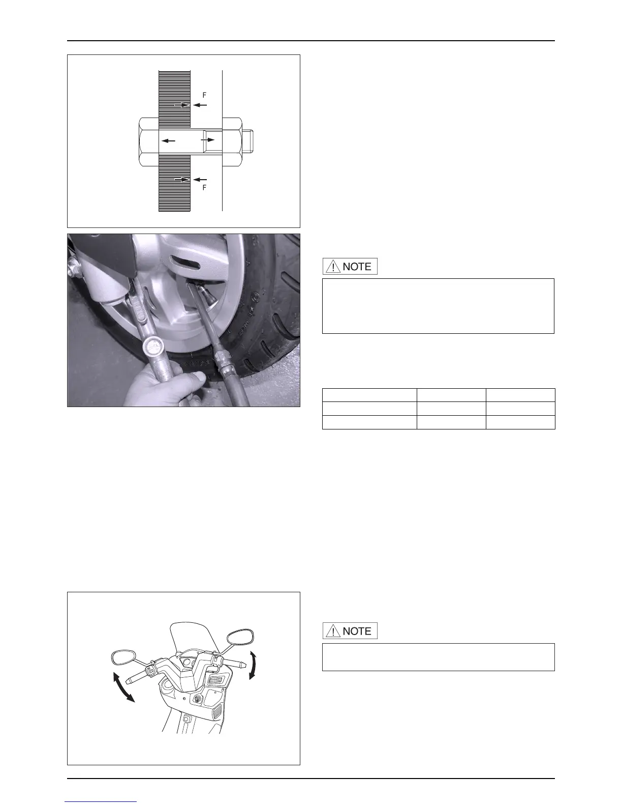 ● Lift the front wheel and check if the handle moves right